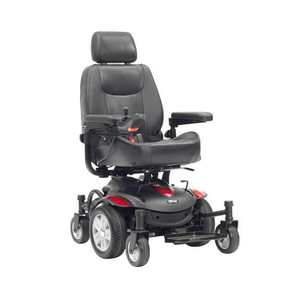 The Titan AXS is the mid-wheel model in the Titan Powerchair range. It has been configured to provide maximum performance, both indoors and outdoors, thanks to its drive wheel position and flexible castor wheels. The seat is height adjustable and contains a removable headrest for optional added comfort. The swivel seat facilitates easy transfers off and on the chair, along with flip-up PU armrests, which also provide improved access to tables.